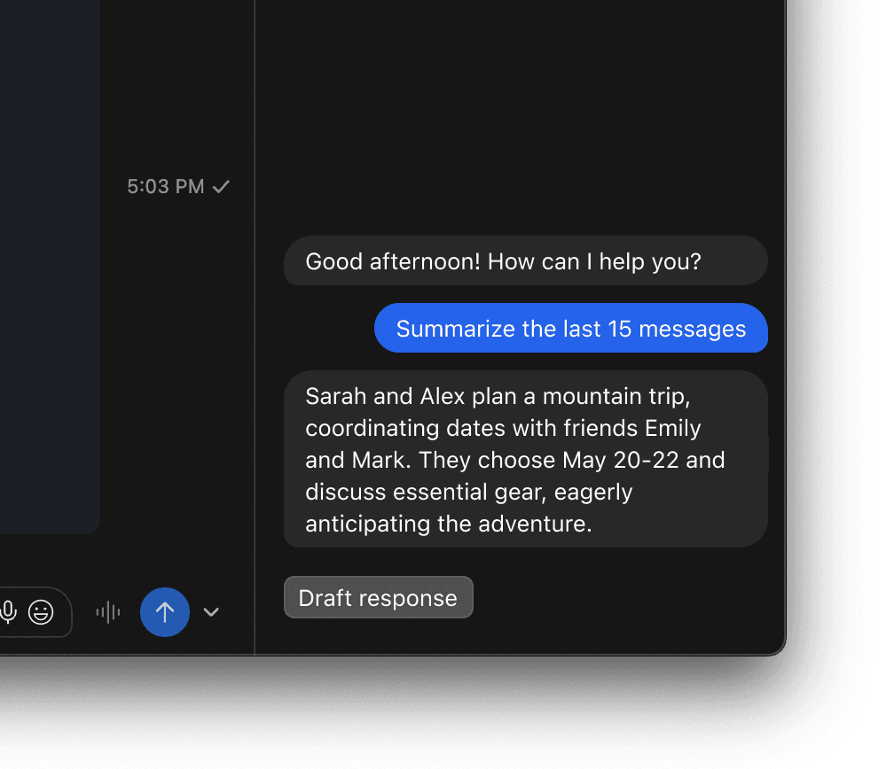 Catch up quickly with automated summaries of the ongoing conversation.